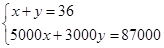 已知某体育商城有A型、B型、C型三种型号的健身器材,其中价格分别是A型每台5000元、B型每台3000元、C型每台2000元.希望学校计划将87000元钱全部用于从该商城购进其中两种不同型号的健身器材36台.请你设计几种不同的购买方案,以供该单位选择,并说明理由.