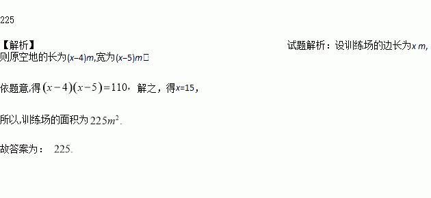 如图,学校将一面积为110m2的矩形空地一边增加4m,另一边增加5m后,建成了一个正方形训练场,则此训练场的面积为_______m2.