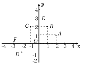 如图,在平面直角坐标系中描出下列各点:A (2,1),B (1,2),C(-1 ,2 ),D(-2,-1 ),E(0,3 ),F(3 ,0)。