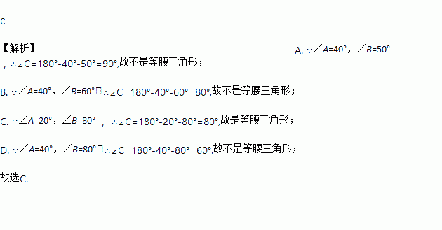 在△ABC中,其两个内角如下,则能判定△ABC为等腰三角形的是( )