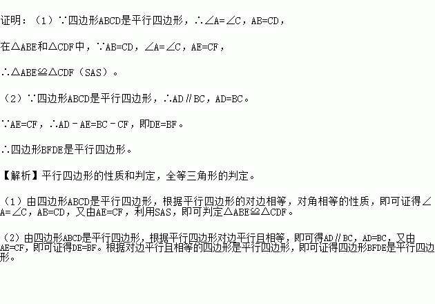 如图,在平行四边形ABCD中,E、F分别在AD、BC边上,且AE=CF.