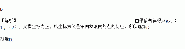 把点A(0,0)先向右平移1个单位长度,再向下平移2个单位长度后,得到的点B位于( )