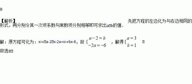 若(x-2)(x+a)=x2+bx-6 ,那么()