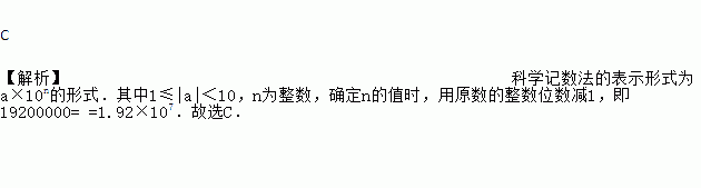 太阳中心的温度是19200000℃,用科学计数法可将数据19200000表示为( )