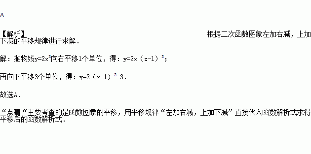 抛物线y=3x2向右平移1个单位,再向下平移2个单位,所得到的抛物线是( )