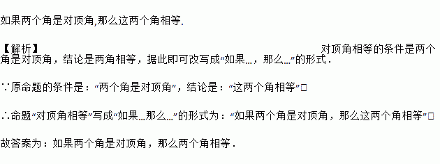 把命题”对顶角相等”写成“如果……那么……”的形式是_________________________________.