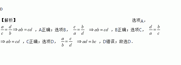 不为0的四个实数a、b,c、d满足ab=cd,改写成比例式错误的是( )