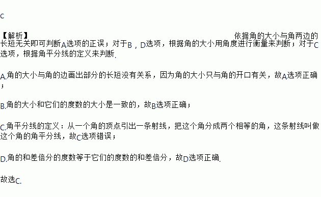 D. 角的和差倍分的度数等于它们的度数的和差倍分