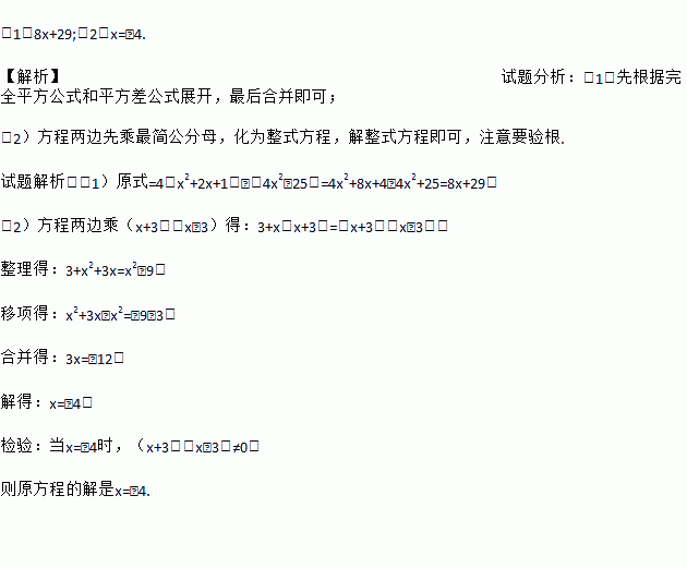 (1)计算4(x+1)2﹣(2x﹣5)(2x+5).