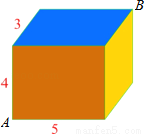 查看答案如图所示,有一个长方体,它的长、宽、高分别为5cm,3cm,4cm.在顶点A处有一只蚂蚁,它想吃到与顶点A相对的顶点B的食物.