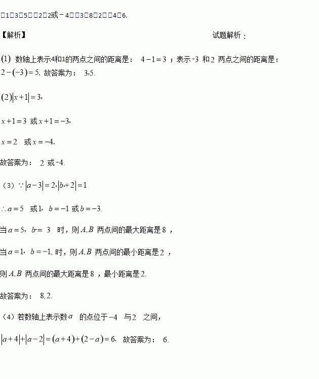 (3)若|a﹣3|=2,|b+2|=1,且数a、b在数轴上表示的数分别是点A、点B,则A、B两点间的最大距离是 ,最小距离是 .