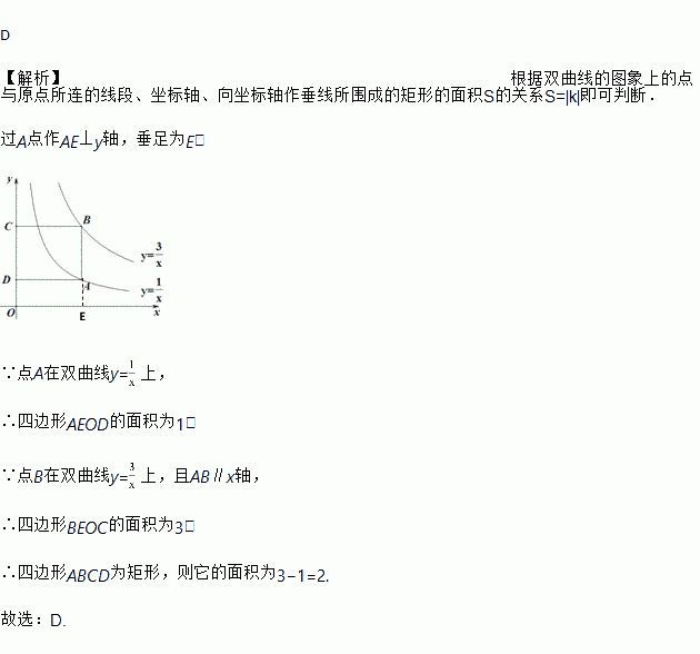 如图,点A在双曲线上,点B在双曲线上,且AB∥y轴,C、D在y轴上,若四边形ABCD为矩形,则它的面积为( )
