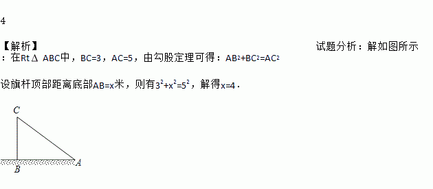 如图,已知一根长8m的竹竿在离地3m处断裂,竹竿顶部抵着地面,此时,顶部距底部有________ m.