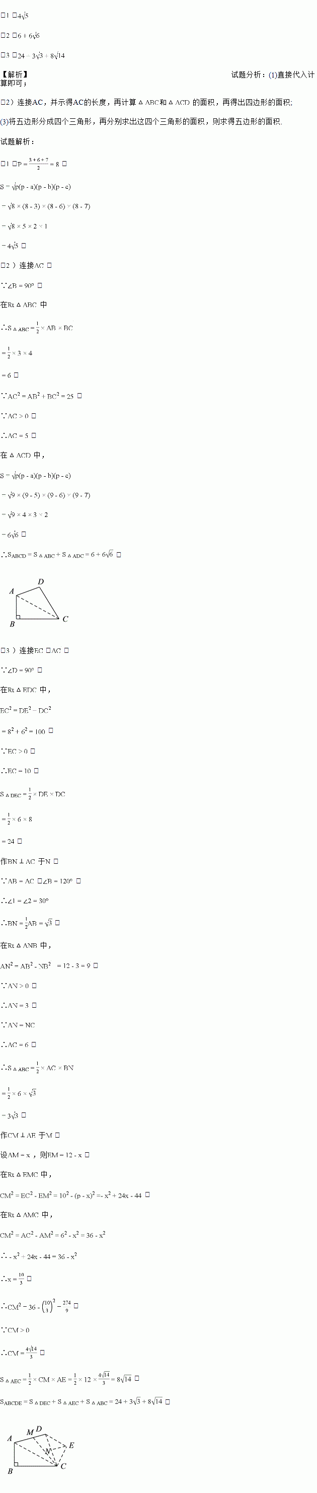 年)得出的,故我国称这个公式为海伦一秦九韶公式.它的表达为:三角形三边长分别为![]()