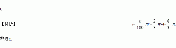 已知扇形的圆心角为120°,半径为4,则扇形的弧长为( )