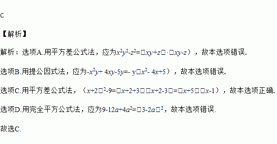 A. x2y2-z2=x2(y+z)(y-z) B. -x2y+4xy-5y=-y(x2+4x+5)