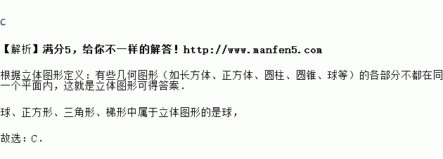 球、正方形、三角形、梯形中属于立体图形的是( )