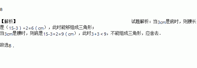 等腰三角形的周长为15cm,其中一边长为3cm.则该等腰三角形的腰长为 ( )