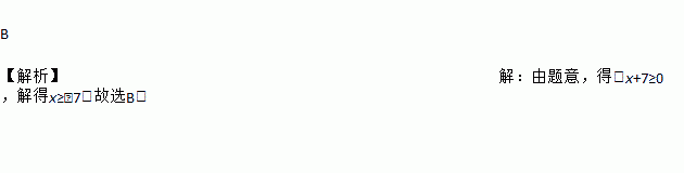 B 【解析】【解析】 由题意,得:x+7≥0,解得x≥﹣7,故选B.