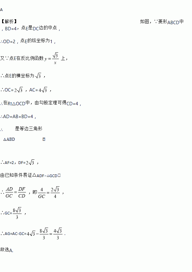 ,经过线段DC的中点E,若BD=4,则AG的长为( )