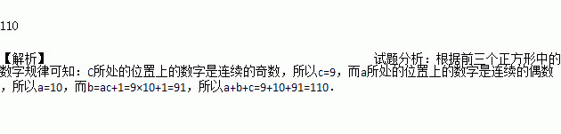 填在下面各正方形中的四个数之间都有一定的规律,据此规律得出a+b+c=________.