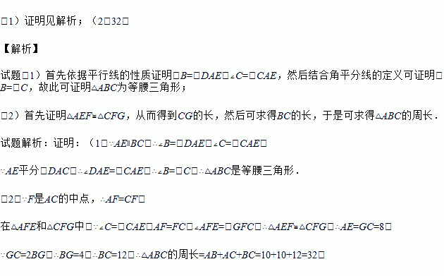 (2)若 AE=8,AB=10,GC=2BG,求△ABC 的周长.