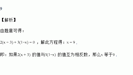 如果2(x+3)的值与3(1﹣x)的值互为相反数,那么x等于_____.