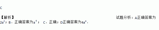 C 【解析】试题分析:A正确答案为2a2;B.正确答案为a6; C.正确;D正确答案为4a4.