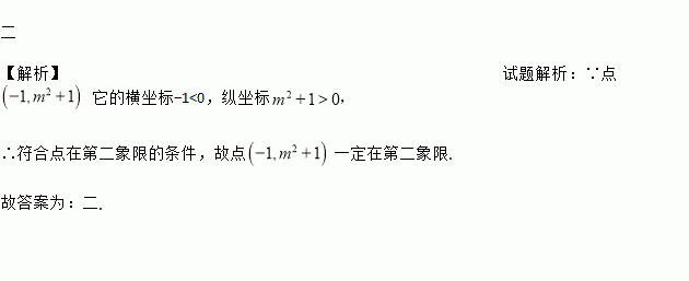 在平面直角坐标系中,点(-1,m2+1)一定在第______ 象限