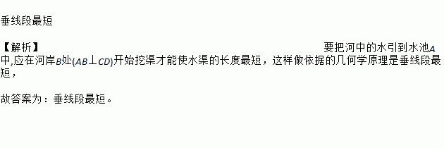 如图,要把河中的水引到水池A中,应在河岸B处(AB⊥CD)开始挖渠才能使水渠的长度最短,这样做的理由是________________.