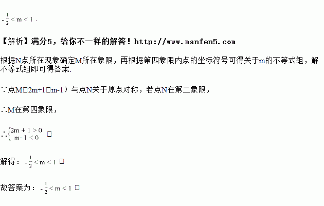 已知点与点关于原点对称,若点在第二象限,则的取值范围是________.