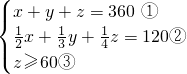 由①②得3x+y=360,