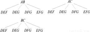 (1)用列举法:(AB,DEF),(AB,DEG),(AB,DFG),(AB,EFG),(AC,DEF),(AC,DEG),(AC,DFG)(AC,EFG),(BC,DEF),(BC,DEG),(BC,DFG),(BC,EFG)共12种可能的选择方式.(6分)用树形图法: