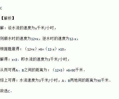 一艘轮船航行在A、B两地之间,已知该船在静水中每小时航行12千米,轮船顺水航行需用6小时,逆水航行需用10小时,则水流速度和A、B两地间的距离分别为( )