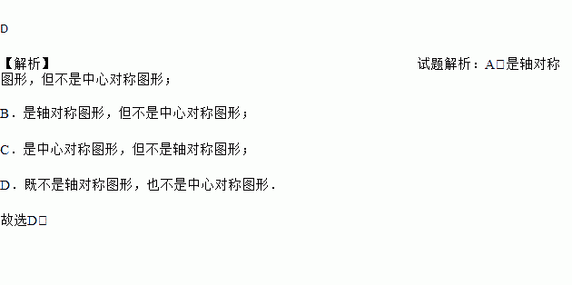 下列地方银行的标志中,既不是轴对称图形,也不是中心对称图形的是 ( )