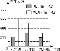 | C. | 本次抽查活动中视力不低于4.8学生人数中的极差为300人 | |