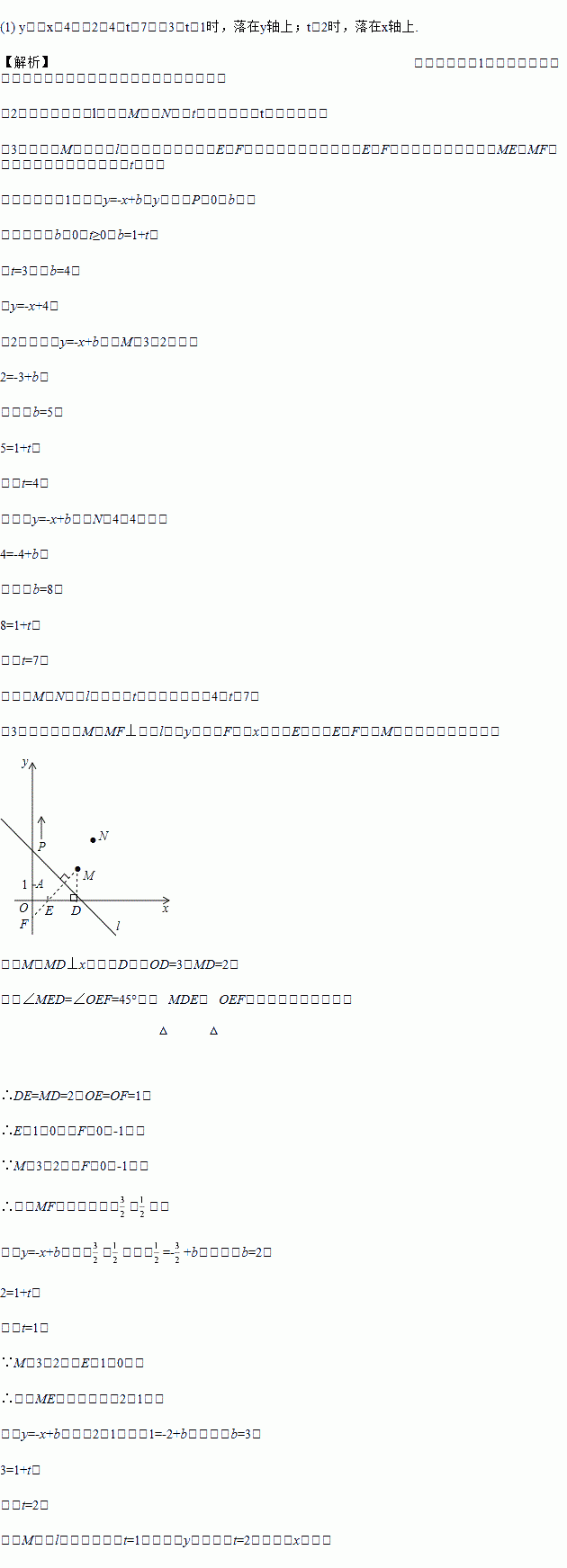 (3)直接写出t为何值时,点M关于l的对称点落在坐标轴上.