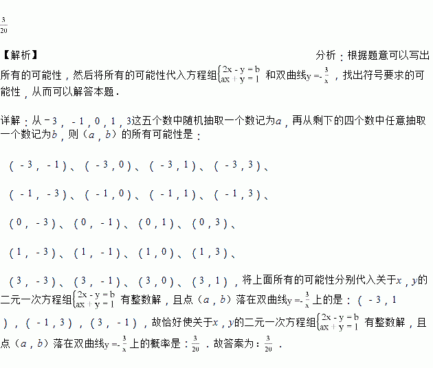 若从 -3,-1,0,1,3这五个数中随机抽取一个数记为a,再从剩下的四个数中任意抽取一个数记为b,恰好使关于x,y的二元一次方程组