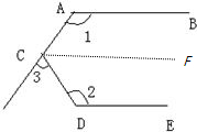 分析:过C作CF∥AB,得到AB∥DE∥CF,根据平行线的性质推出∠1+∠ACF=180°,∠2+∠DCF=180°,求出∠ACF、∠DCF的度数,根据∠3=180°-∠ACF-∠DCF,即可求出答案.