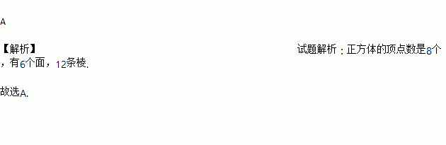 正方体的顶点数、面数和棱数分别是( )