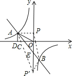 ∵S△APB=5,A点横坐标为:-2,B点横坐标为: