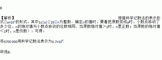 长城、故宫等是我国第一批成功入选世界遗产的文化古迹,长城总长约6700 000米.将6700 000用科学数法表示应为( )