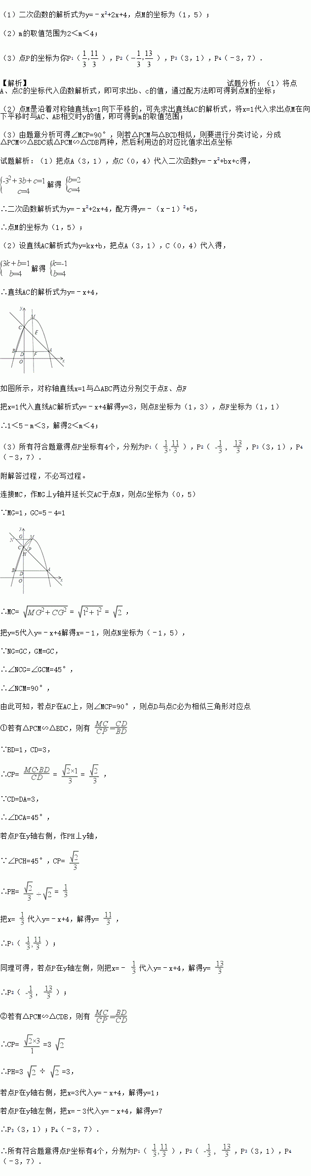 (3)点P是直线AC上的动点,若点P,点C,点M所构成的三角形与△ BCD相似,请直接写出所有点P的坐标(直接写出结果,不必写过程).