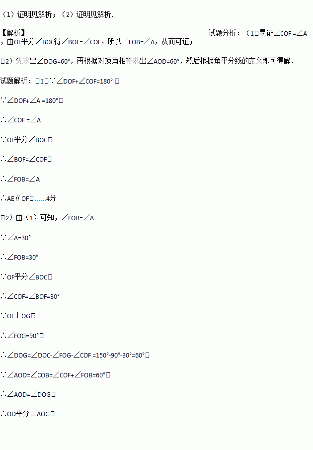 (2)若∠A=30°,求证:OD平分∠AOG.