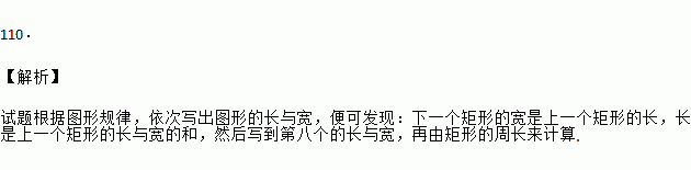 意大利著名数学家斐波那契在研究兔子繁殖问题时,发现有这样一组数:1,1,2,3,5,8,13,…,其中从第三个数起,每一个数都等于它前面两个数的和.现以这组数中的各个数作为正方形的边长值构造正方形,再分别依次从左到右取2个、3个、4个、5个…正方形拼成如上长方形,若按此规律继续作长方形,则序号为⑦的长方形周长是