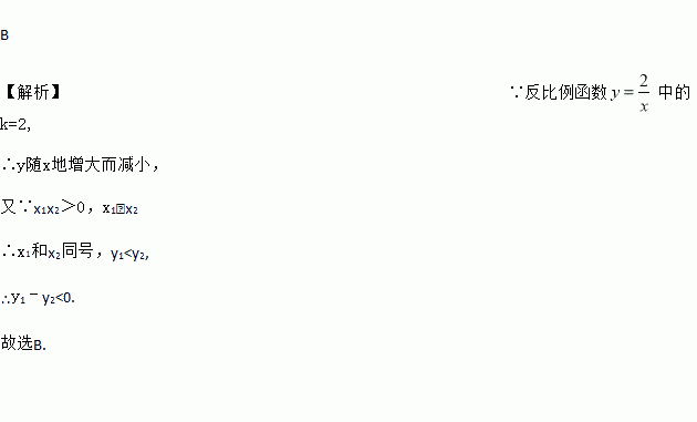 反比例函数的图象上有两点A(x1,y1),B(x2,y2),若x1>x2,x1x2>0,则y1﹣y2的值是( )