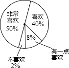 解:①非常喜欢占全年级的比例=200÷400=50%,表示非常喜欢的扇形的圆心角=360°×50%=180°;