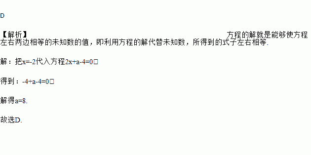 方程2x+a﹣4=0的解是x=﹣2,则a等于( )