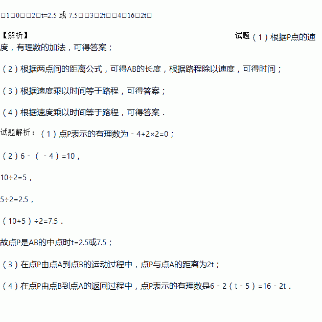 如图,在数轴上点 A 表示的有理数为﹣4,点 B 表示的有理数为 6,点 P 从 点 A 出发以每秒 2 个单位长度的速度在数轴上沿由 A 到 B 方向运动,当点 P 到 达点 B 后立即返回,仍然以每秒 2 个单位长度的速度运动至点 A 停止运动.设 运动时间为 t(单位:秒).