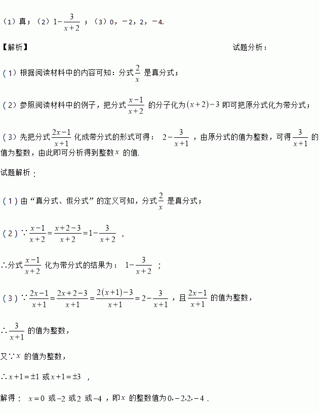 类似的,假分式也可以化为带分式(即:整式与真分式的和的形式).
